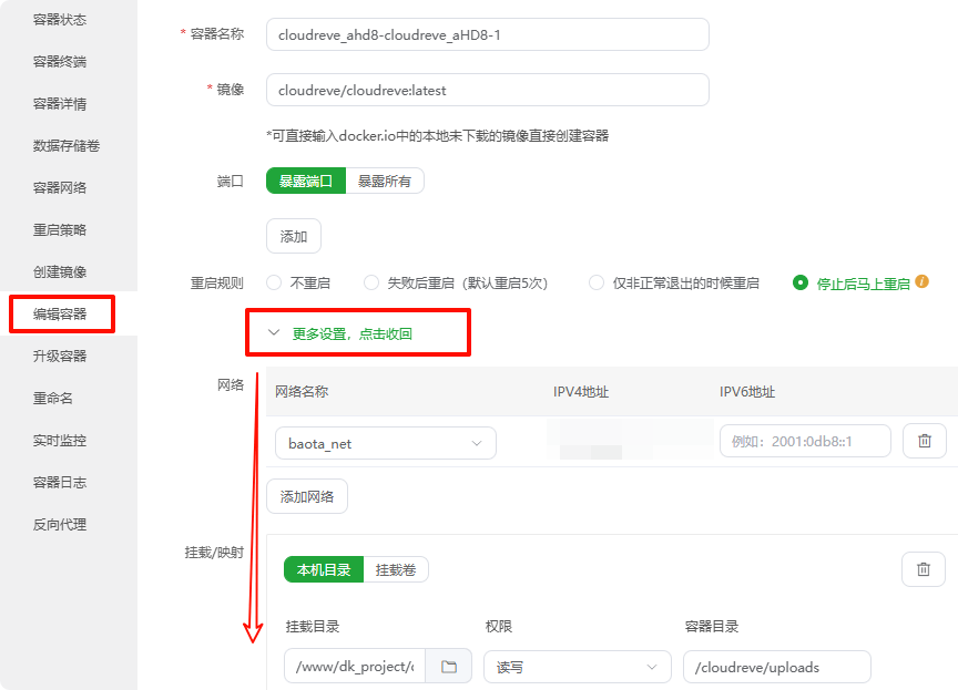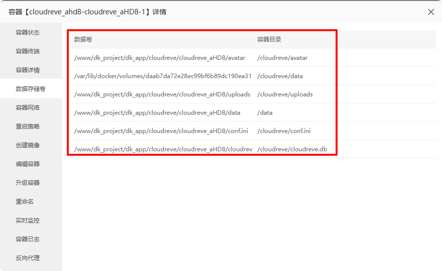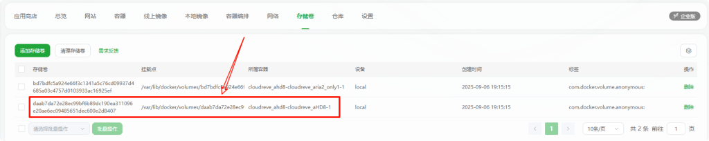 宝塔的docker数据存储在数据卷中,需要单独进行备份,如下图: