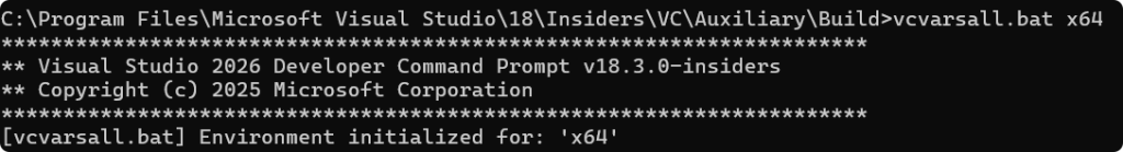 以VS2026为例,vcvarsall.bat在C:\Program Files\Microsoft Visual Studio\18\Insiders\VC\Auxiliary\Build目录。先在QT的命令行中执行该bat,然后再打包。