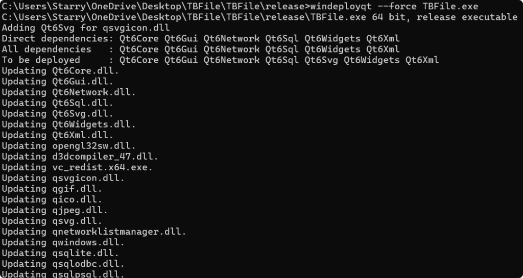 通过使用QT的windeployqt工具进行项目所有依赖库的生成: